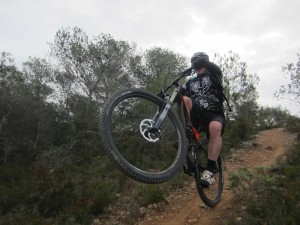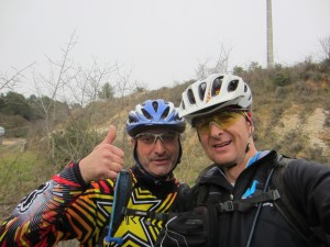 Sortie de secours à Aumes, certainement le seul endroit de la région où on a pu faire du vtt sans pluie ni neige, la preuve on a rencontrer Simon André (presque rien) qui a bader le bike de Cochignolle (depuis il dort avec).